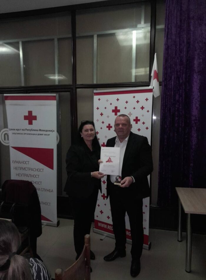 Градоначалникот Најдовски истакна дека му е голема чест и задоволство што Црвен крст Демир Хисар неколку пати по ред добива признанија за исполнет план за крводарителство и изрази благодарност за развојот и унапредувањето на крводарителството во нашата општина.
