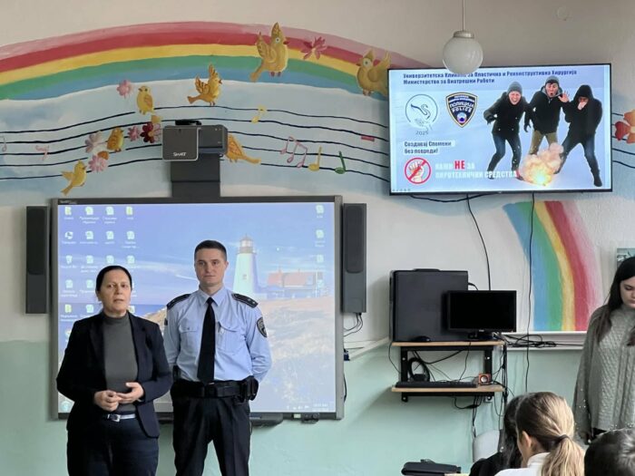 Денес, со полициски службеници од Одделението за превенција при СВР Битола, ПС од ОН Демир Хисар и лекар од Универзитетската клиника за пластична и реконструктивна хирургија реализиравме едукативно предавање за подигнување на свеста за штетните последици од употребата на пиротехнички средства со учениците од ООУ “Гоце Делчев” и СОУ “Крсте П.Мисирков” Демир Хисар.