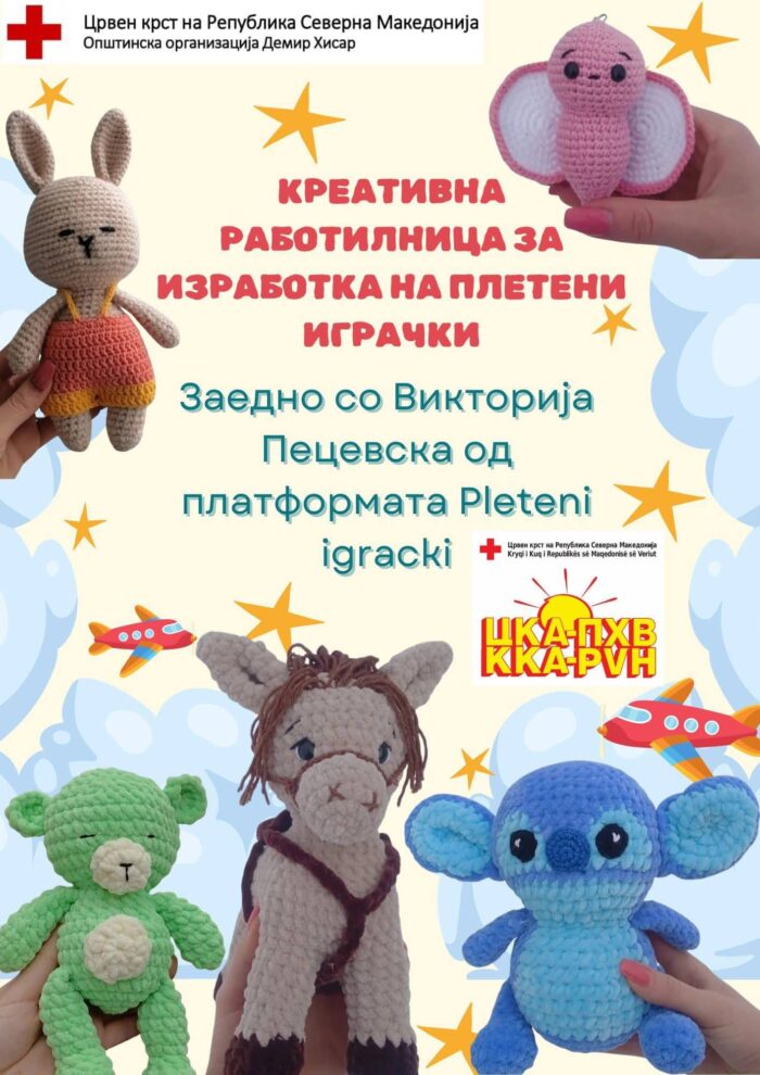 Со многу креативност, трпение, насмевки и убава дружба успешно ја реализиравме креативната работилница за изработка на плетени играчки и приврзоци со младиот уметник Викторија Пецевска од платформата Pleteni igracki, која специјално за оваа работилница дојде од Битола да даде поддршка на еден од проектите.