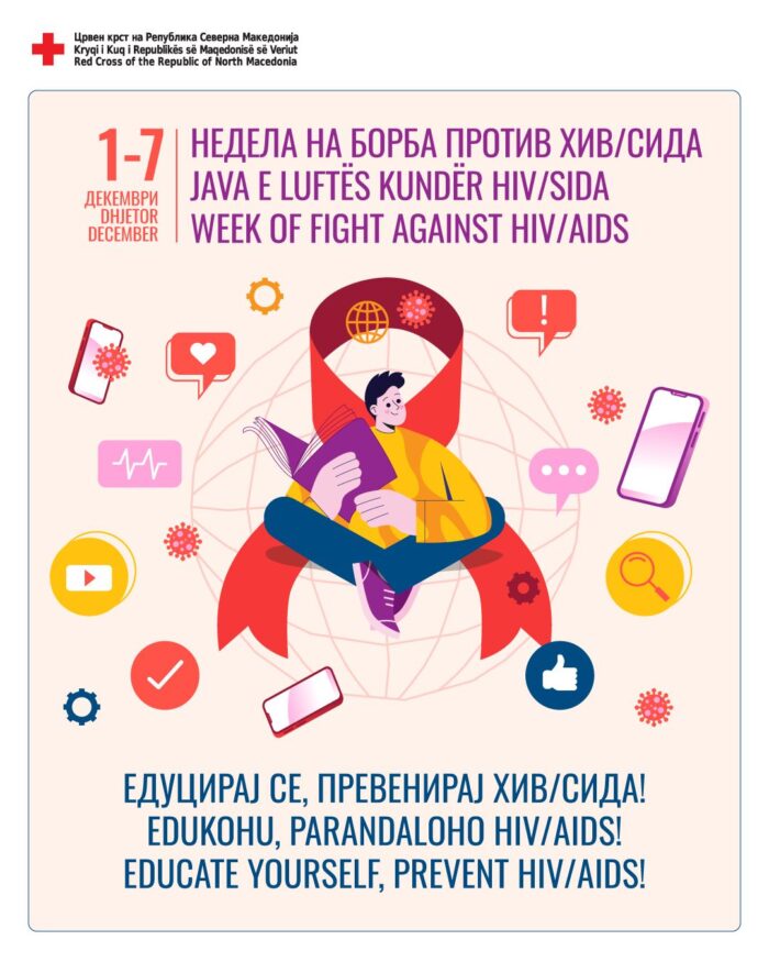 Во рамките на Неделата на Борба против ХИВ/СИДА, преку спроведување на едукативни работилници, подготовка на прашалници, споделување информации, постери на социјалните медиуми и др. спроведуваме активности за подигнување на свеста кај младата популација за превенција од ХИВ/СИДА.